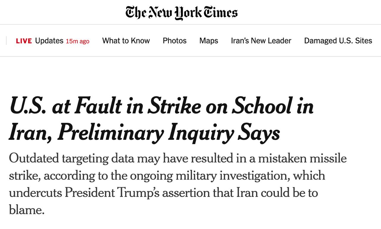 США "случайно" ударили по школе в Иране, убив более 170 учениц — The New York Times со ссылкой на предварительные данные расследования