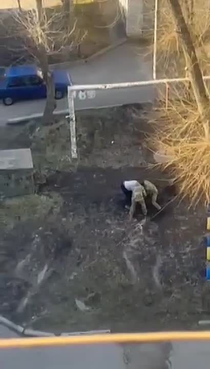 В Киеве мусора по беспределу пристегнули мужика к забору, что является нарушением Конституции, но Зеленскому на это все равно.