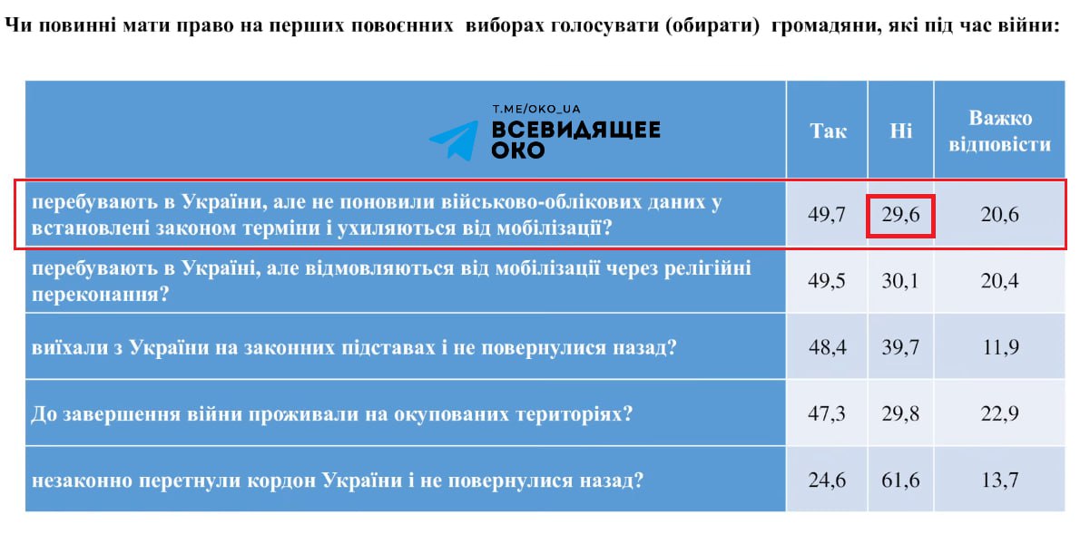 30% украинцев против голосования ухилянтов на послевоенных выборах — данные нового опроса.