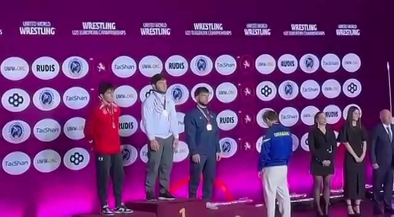Во время церемонии награждения, когда заиграл гимн России, украинец демонстративно сошёл с пьедестала и отвернулся от флагов.