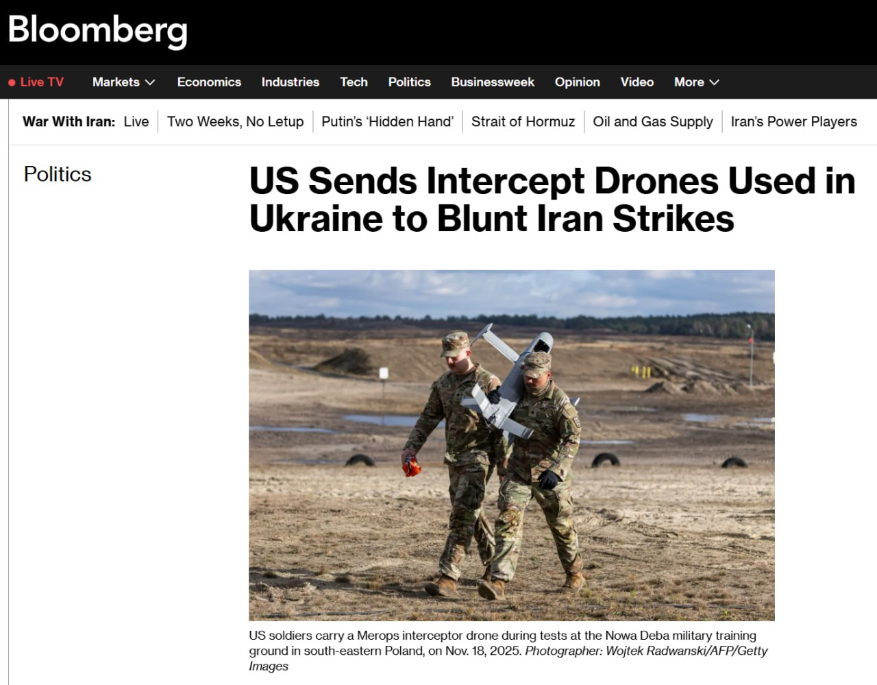 Американское издание сообщает, что Пентагон перебросил в регион беспилотники-перехватчики Merops, созданные при участии Украины. Дроны стоимостью около $14-15 тысяч за штуку были отправлены на Ближний Восток в течение пяти дней после начала операции против Ирана. Их задача, как отмечает газета, — сбивать иранские беспилотники, не расходуя дорогостоящие ракеты Patriot и THAAD, каждая из которых стоит более $4 миллионов.