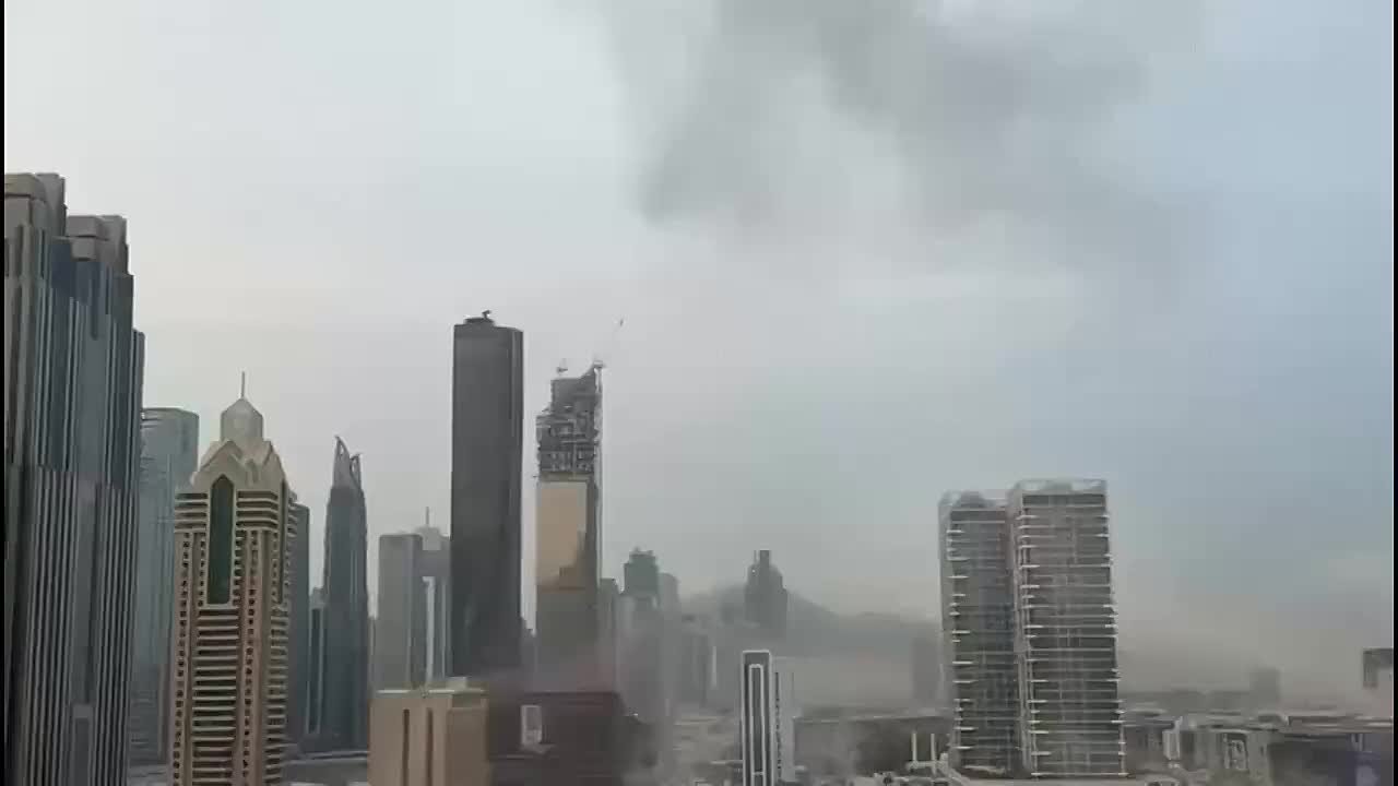 Дубай снова горит, атака беспилотников (видео 1).