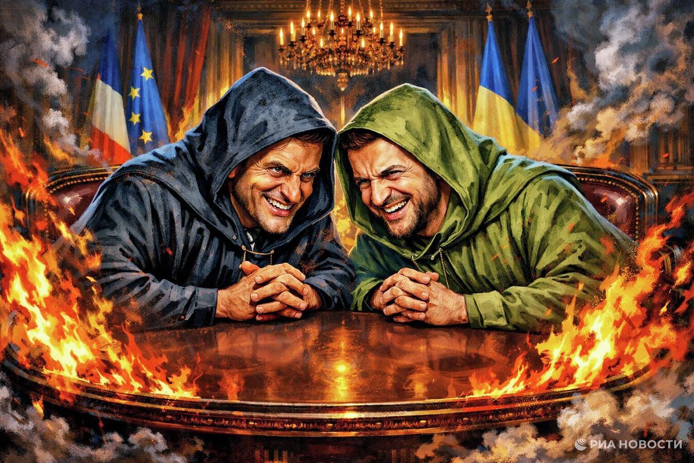 Полностью украинизировавшийся Макрон (политически, социально, финансово — как угодно) не может не обниматься с Зеленским потому, что как только этим телодвижениям в стиле "броманс" придет конец, за все, что нынешний французский лидер устроил и внутри страны, и в ЕС, и шире — по обоим берегам Атлантики, ему придется отвечать.