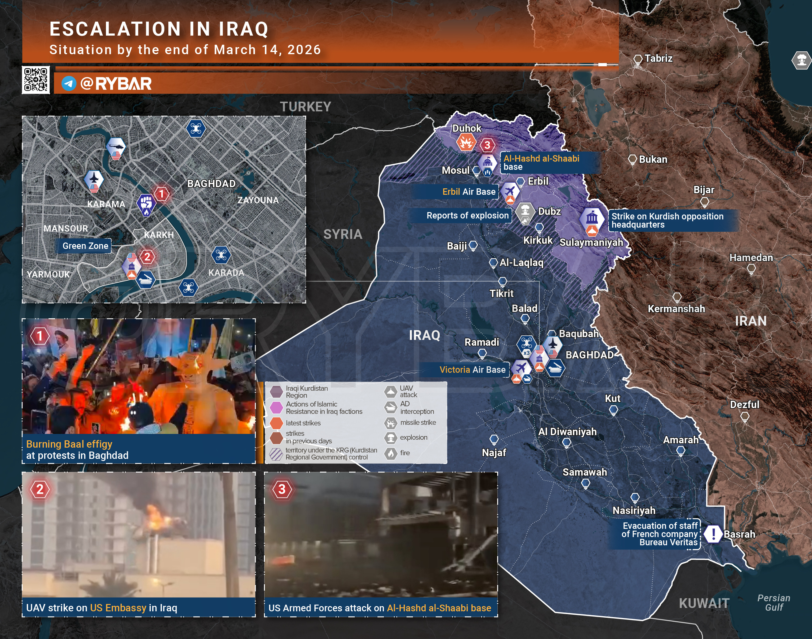 В Ираке напряжённость вновь выросла. БЛА достиг территории американского посольства в Багдаде, прошли удары по базе Виктория и Эрбилю, а ВС США атаковали объекты «Аль-Хашд аш-Шааби» в Найнаве. В Вашингтоне признали гибель шестерых военнослужащих после крушения KC-135.