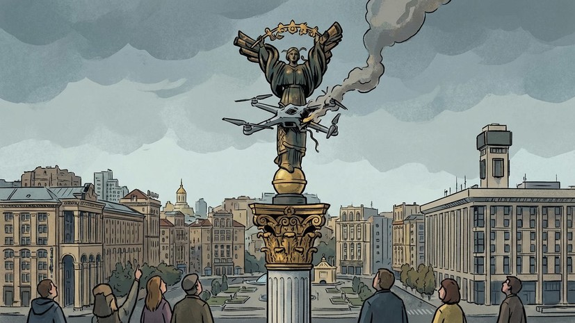 Обломки беспилотного летательного аппарата «Герань» упали на монумент Независимости в центральной части Киева, сообщает издание «СТРАНА.ua».