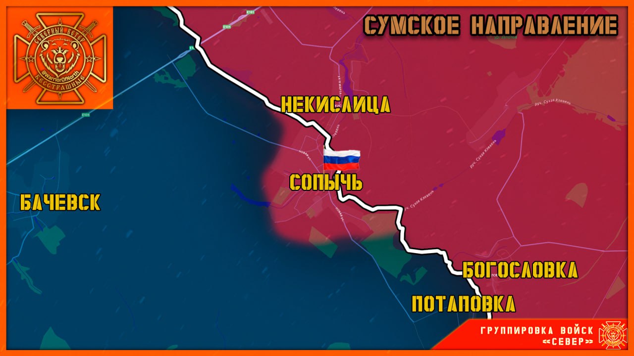 В ходе ожесточённых боёв штурмовые группы группировки «Север» при поддержке авиации, артиллерии и БПЛА выбили формирования ВСУ из села Сопычь в Шосткинском районе. Населённый пункт перешёл под контроль российских сил.
