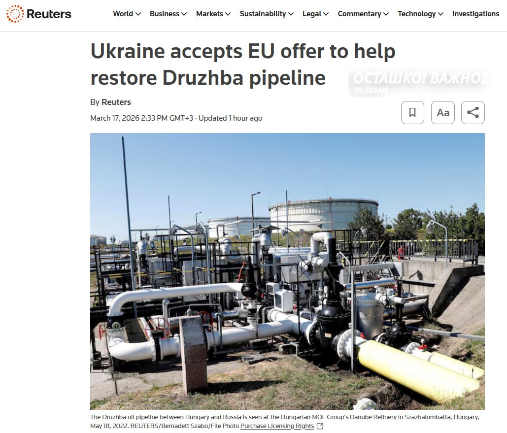 На этом фоне Венгрия и Словакия продолжают блокировать 20-й пакет санкций против России и выделение Украине €90 млрд, требуя возобновления подачи нефти. Саммит ЕС 19–20 марта в Брюсселе станет новой попыткой продавить эти решения.