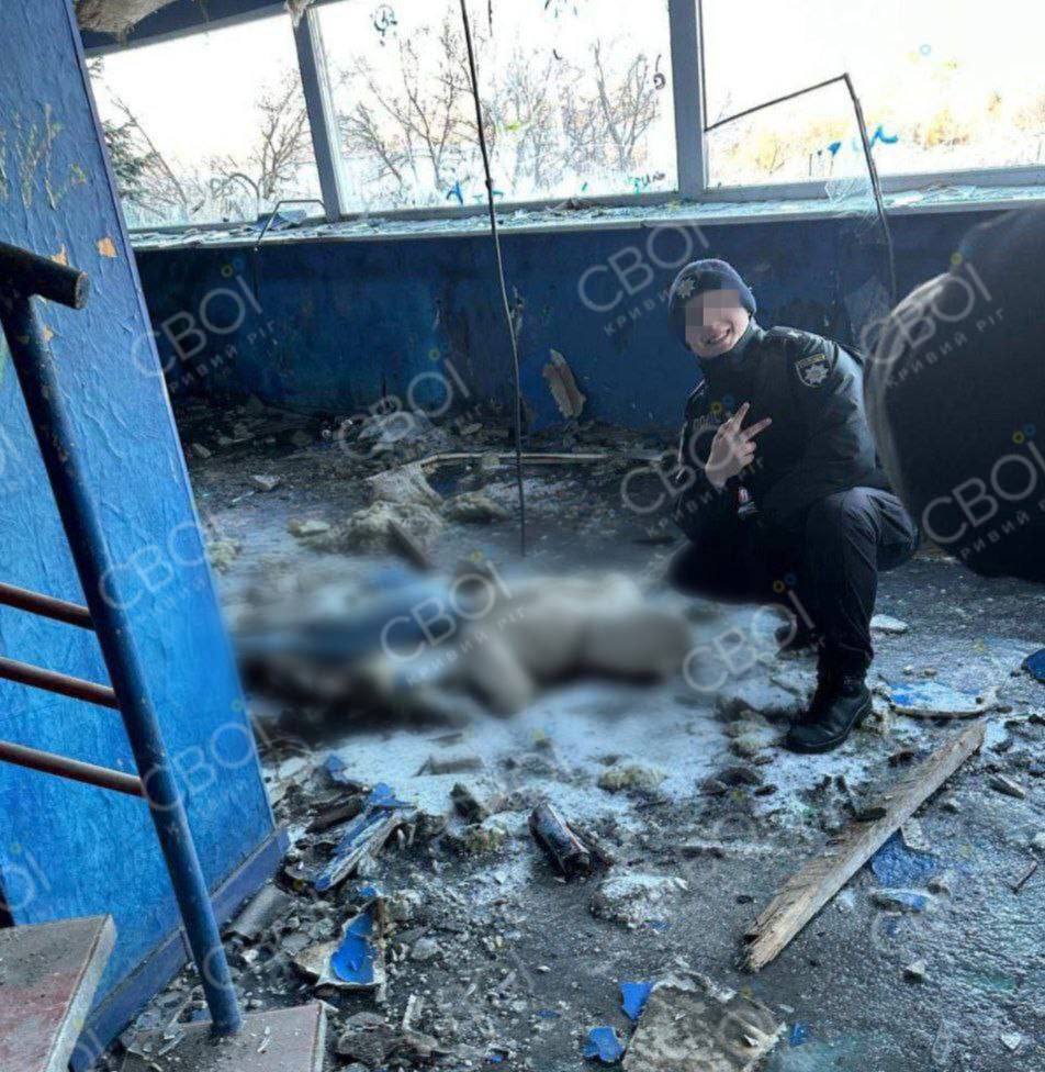 Тело 14-летнего подростка было обнаружено в заброшенном кафе «Nautilus». К поискам, как это часто бывает, привлекли курсантов — очевидно, для «хозяйственных работ» или оцепления. Однако один из «стражей порядка» нашел для себя другое занятие: вместо выполнения служебного долга он решил сделать радостное фото на память.
