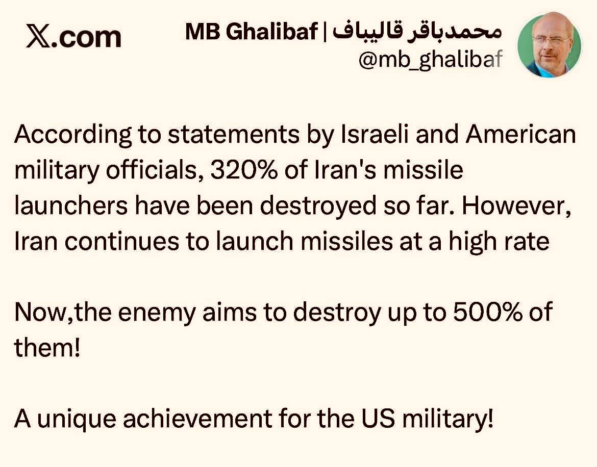 Согласно заявлениям израильских и американских военных чиновников, до настоящего времени было уничтожено 320% иранских ракетных установок.Однако Иран продолжает запускать ракеты в больших количествах.