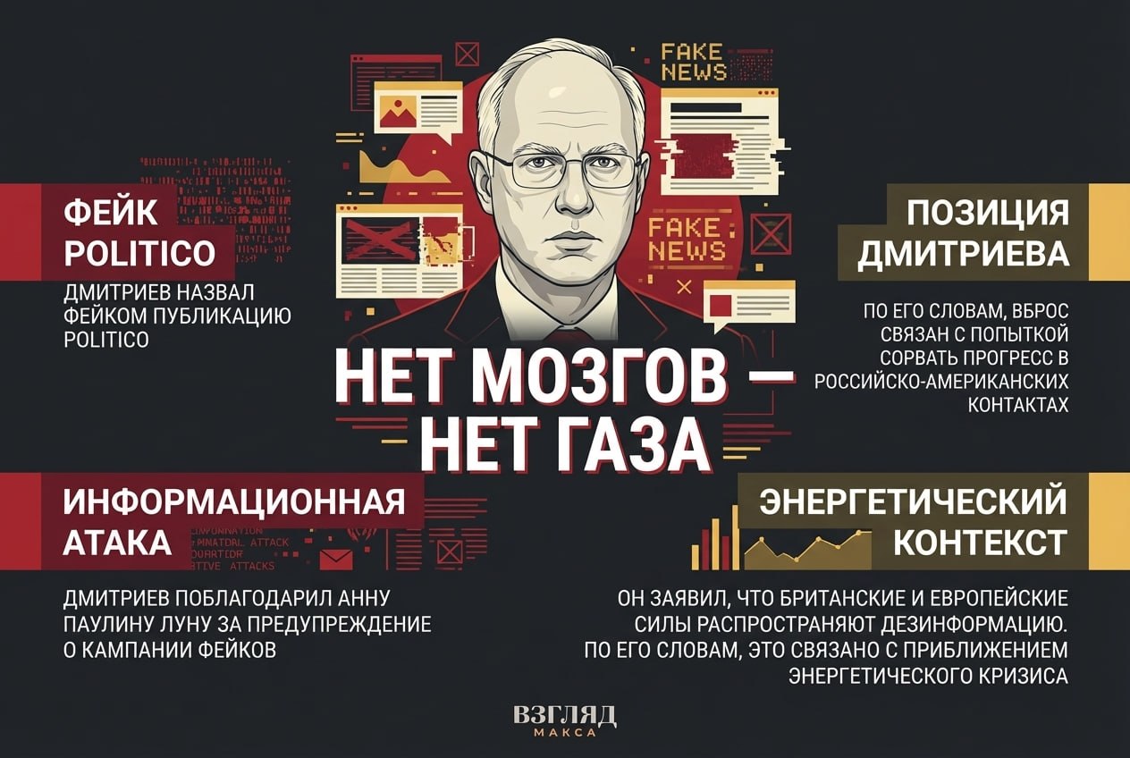 В отдельном заявлении Дмитриев прямо возложил ответственность за подобные информационные атаки на Лондон и Брюссель. По его словам, «напуганные британские и европейские поджигатели войны распространяют фейковые новости, чтобы отвлечь внимание», поскольку понимают, что приближается «энергетическое цунами», которое, как считает глава РФПИ, обнажит их стратегические просчёты и неспособность признать собственные ошибки. Свою реплику он завершил жёсткой формулой: «Нет мозгов — нет газа».