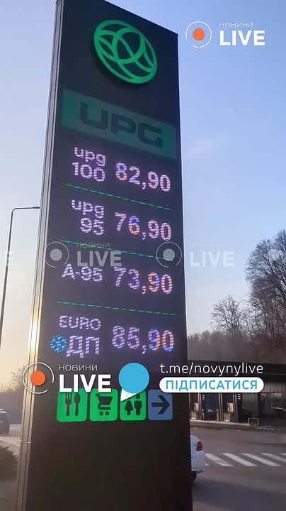 Дизельное топливо: от 85,90 грн/л ( 164,13 руб.) до почти 90 грн/л ( 171,96 руб.). На некоторых АЗС встречалась цена, приближающаяся к отметке 100 грн/л ( 191,07 руб.);