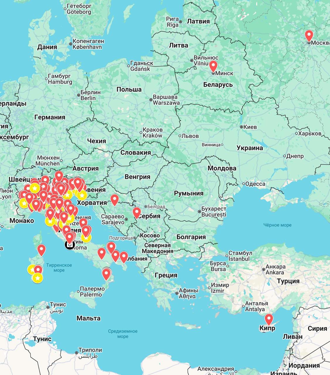 Местное движение Europa Radicale отметило на карте все успешные показы документальных фильмов телеканала. Карта стала более красной, чем до этого рисовала газетаIl Riformista.