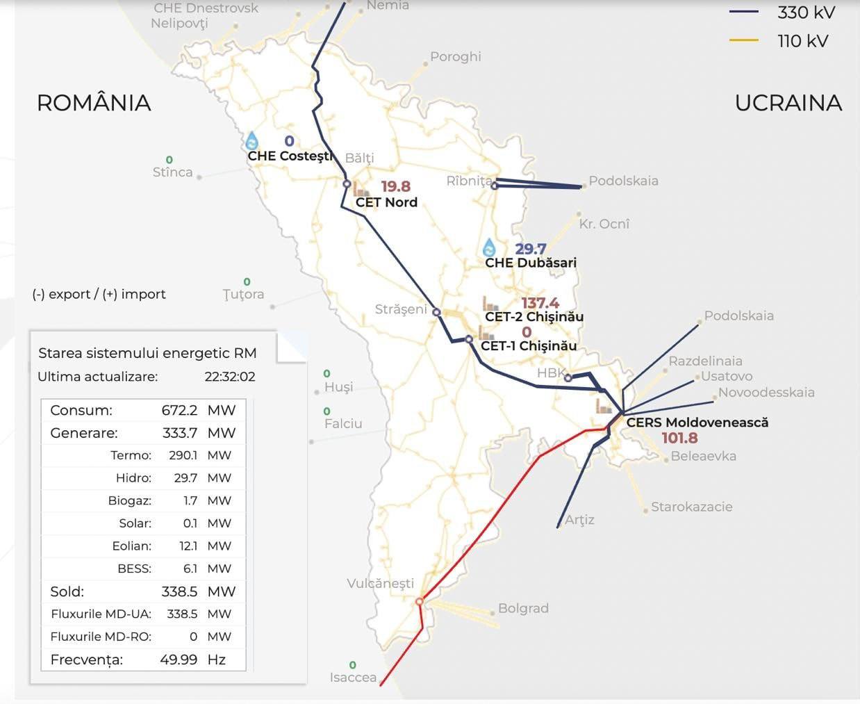 В Молдове отключили линию электропередач Исаакча – Вулканешты. Это основной канал импорта электроэнергии из Румынии.