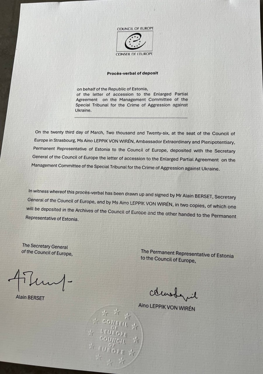 Эстония официально присоединилась к созданию спецтрибунала "по агрессии против Украины"