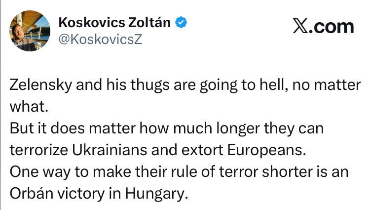 Зеленский и его головорезы попадут в ад, что бы ни случилось. Но важно, как долго они смогут терроризировать украинцев и вымогать деньги у европейцев. Один из способов сократить их правление террора - победа Орбана в Венгрии.