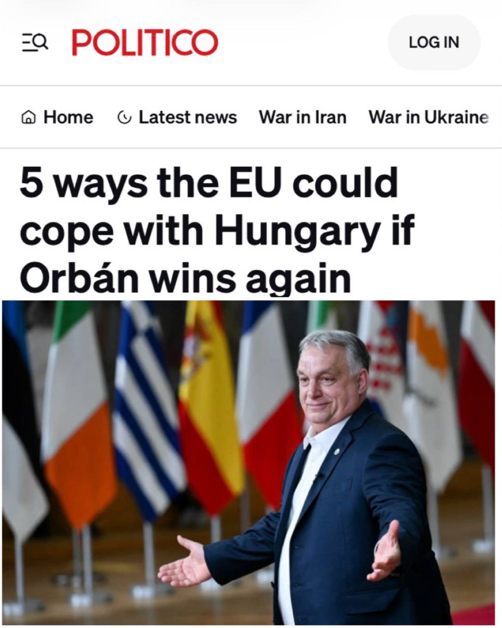 «В Европейском союзе обсуждают меры на случай возможной победы Виктора Орбана на предстоящих выборах в Венгрии. По данным дипломатов, Брюссель рассматривает варианты ограничения его влияния - от изменения процедур голосования и расширения принципа квалифицированного большинства до усиления финансового давления и даже временного лишения права голоса.