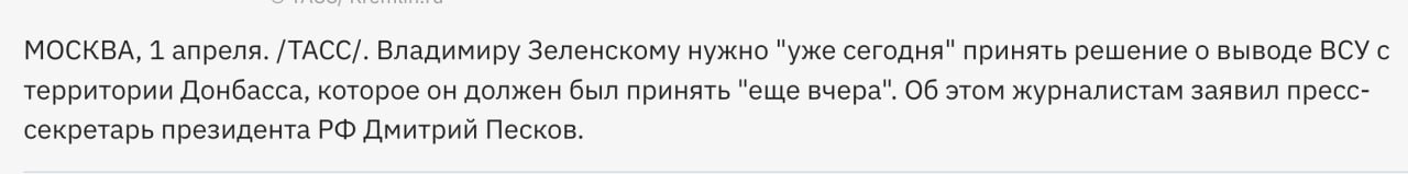 Киевский диктатор Зеленский, накануне собравший антироссийский шабаш в Буче под Киевом, пожаловался, что ответом на его предложение о «пасхальном перемирии» стал массовый запуск русских ударных...