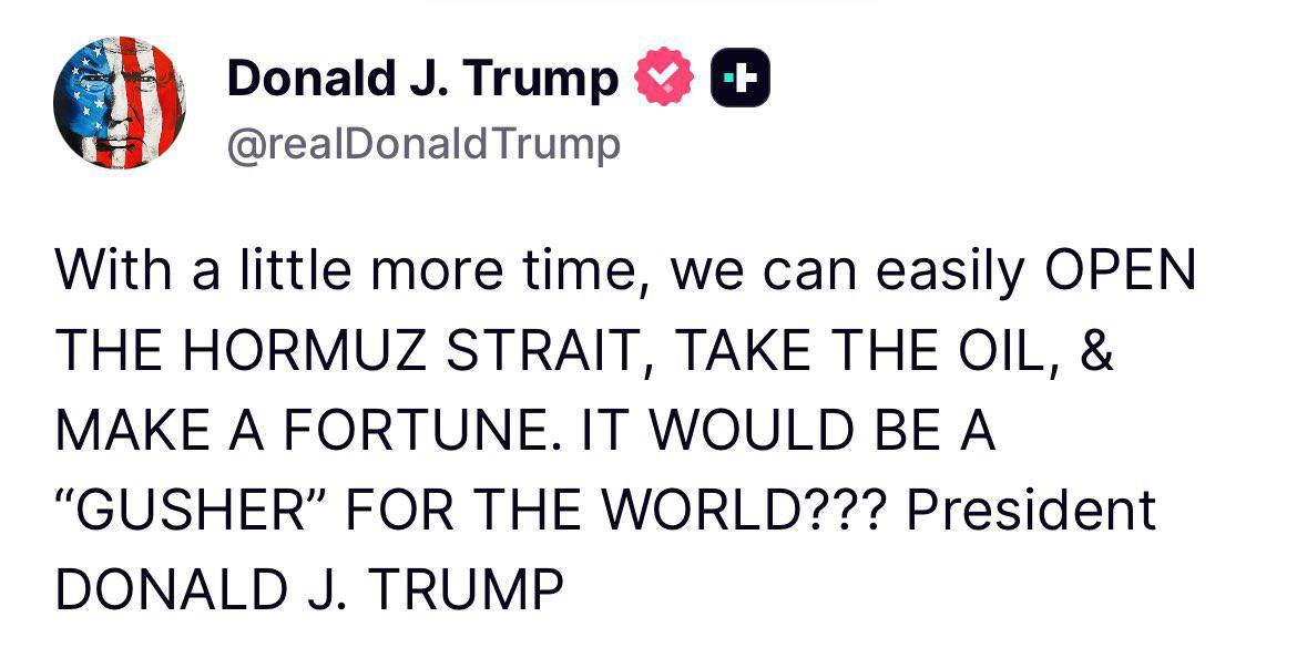 То Зеленский предлагает наладить там судоходство, то вот Трамп обещает «нефтяной фонтан» для всего мира. Говорит, что осталось совсем немного времени, и они всю нефть заберут. Целое состояние заработают.