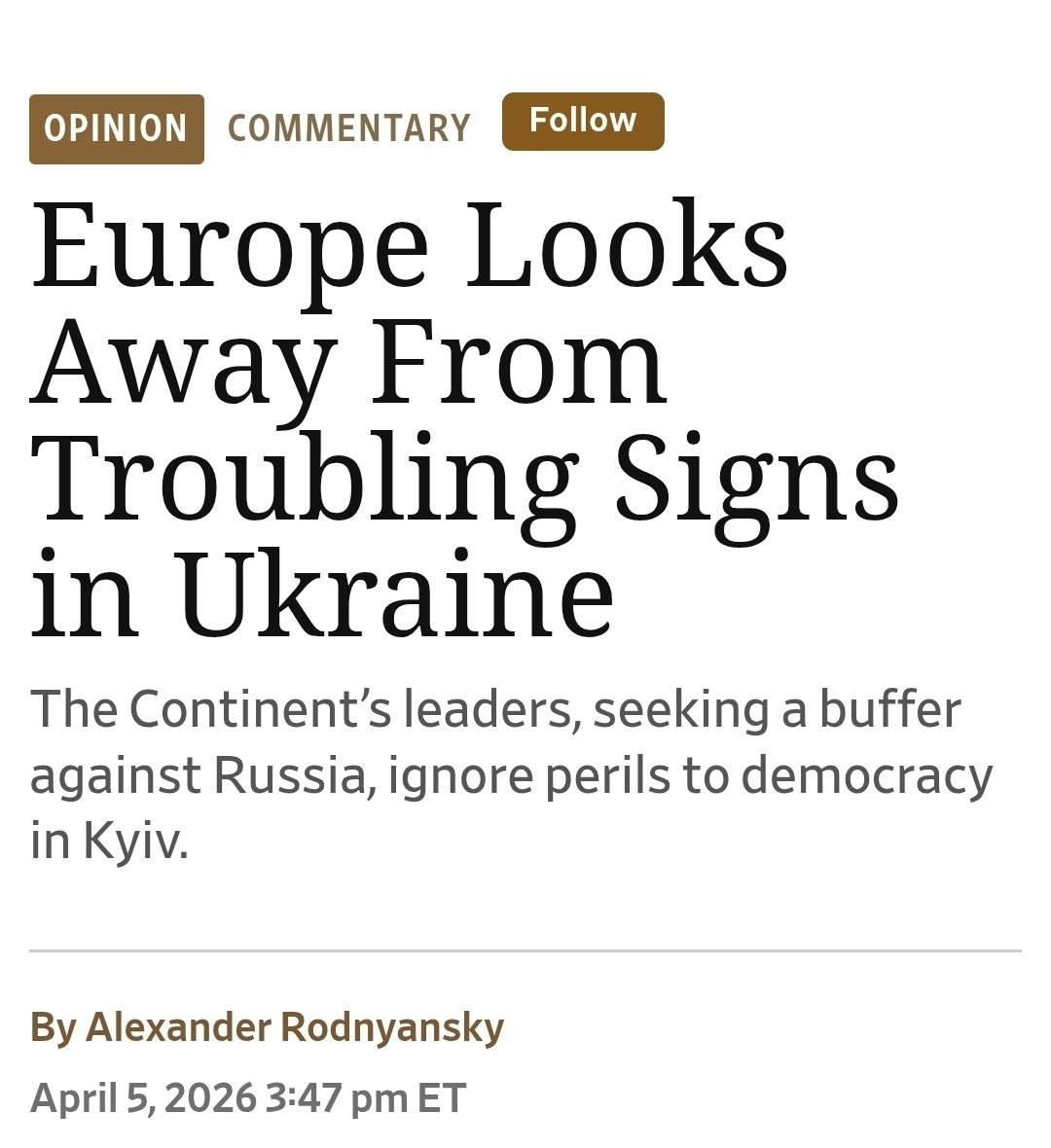 При этом автор подчёркивает, что речь не идёт об отказе от поддержки Украины. Если Европа действительно рассматривает её как будущего партнёра, политика должна измениться.