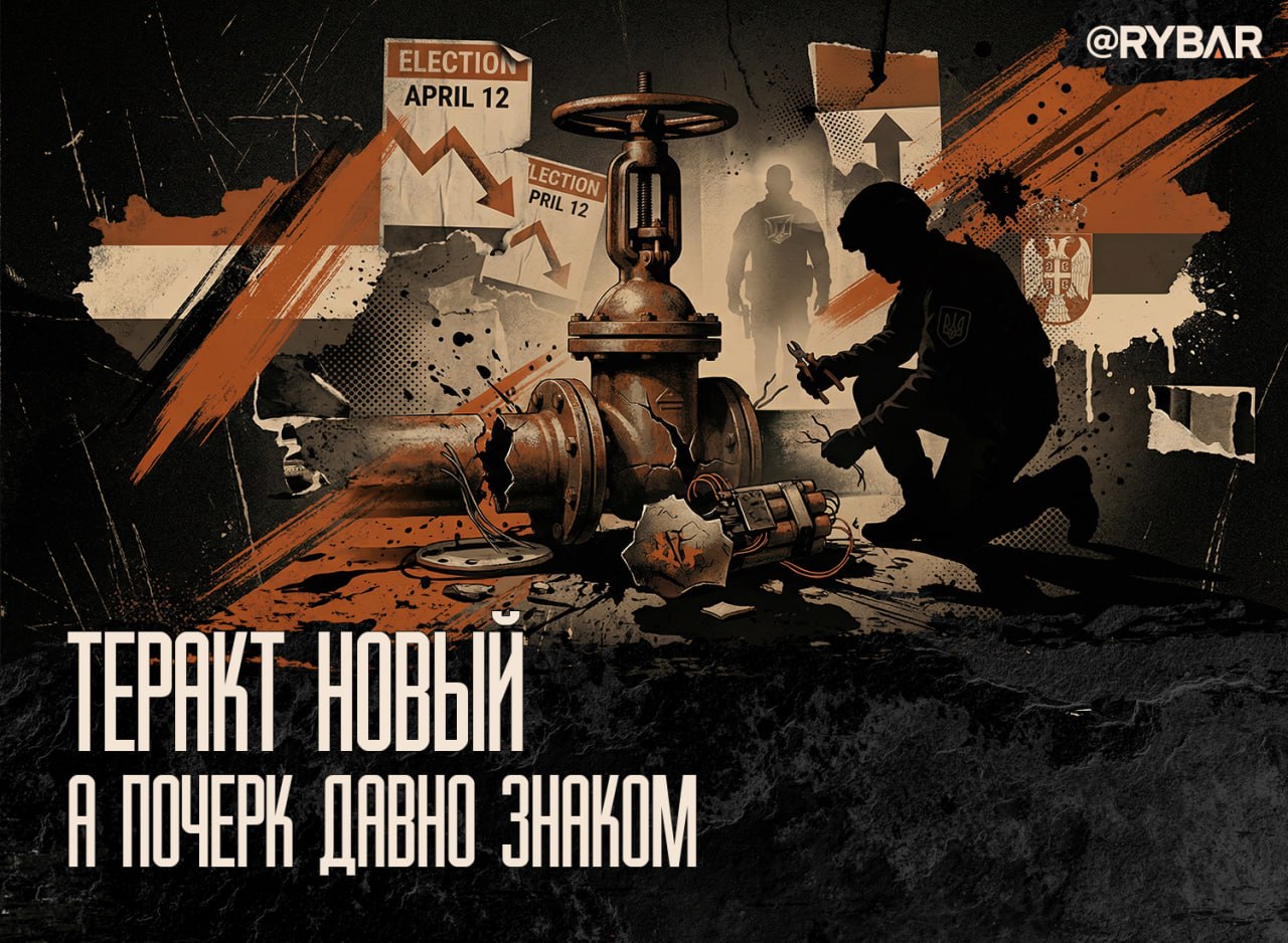 По сути попытка теракта направлена против Венгрии: подрыв отрезал бы от газа только её, в то время как Сербия и дальше получала бы энергоносители. Поэтому намеки сербов и венгров на украинскую разведку выглядят вполне прозрачными, а поскольку акция не удалась, к 12 апреля наверняка нас ожидают и другие сюрпризы.