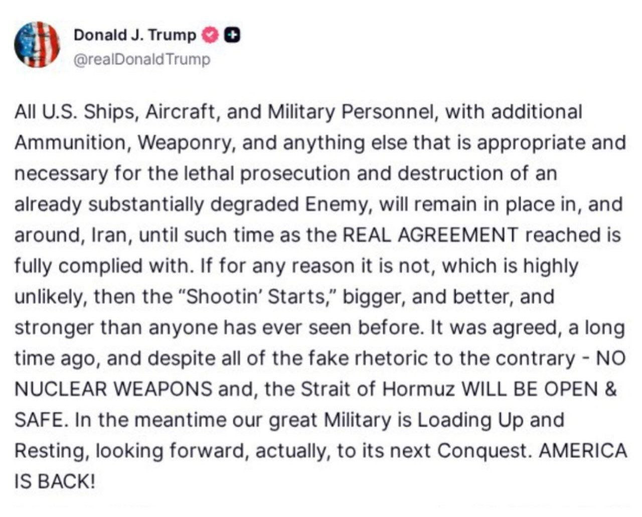Не прошло и суток с момента, как США, Израиль, ОАЭ и даже Украина заявили о победе над Ираном и заключении перемирия, но что-то пошло не по плану, а Трамп снова готов к бою.