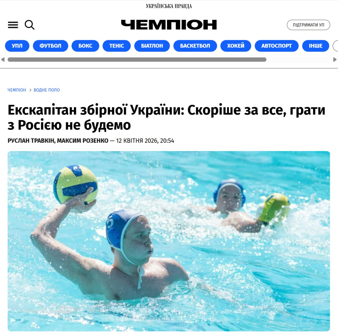 Федерация водного поло Украины обратилась с официальным запросом об отмене матча со сборной России на Кубке мира, сообщил представитель украинской федерации Александр Дядюра порталу «Чемпион».