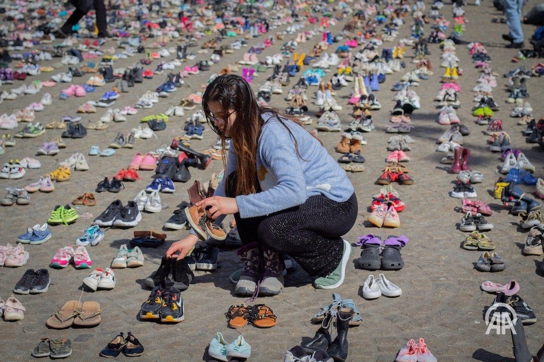 Выставка сотен пар обуви в Амстердаме в память о детях и журналистах, погибших в Газе