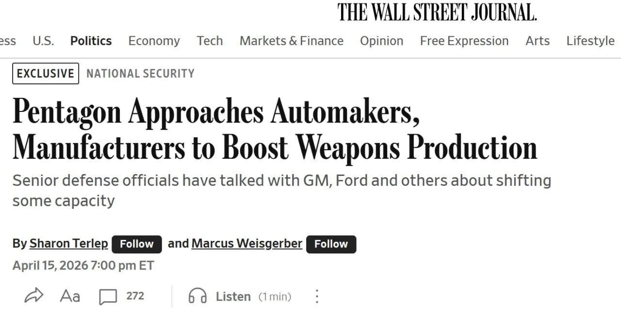 Высокопоставленные представители оборонного ведомства вели переговоры с GM и Ford о перераспределении части производственных мощностей, сообщает WSJ.