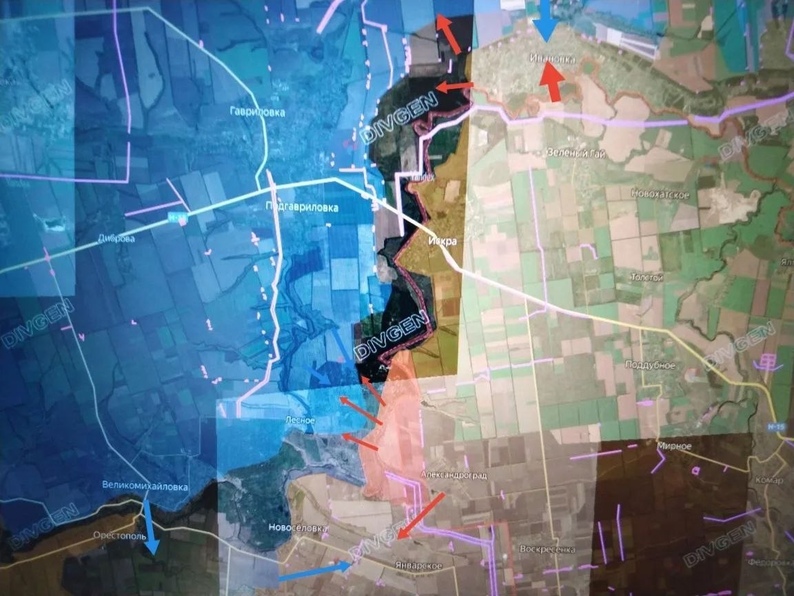 Наши подразделения отразили натиск противника в направлении Комара, восстановили положение в районе Александрограда, форсировали р. Волчья и заняли плацдарм на её правом берегу, выбили ВСУ из половины лесного заказника "Новопавловский лес" и продвигаются в направлении н.п. Лесное;