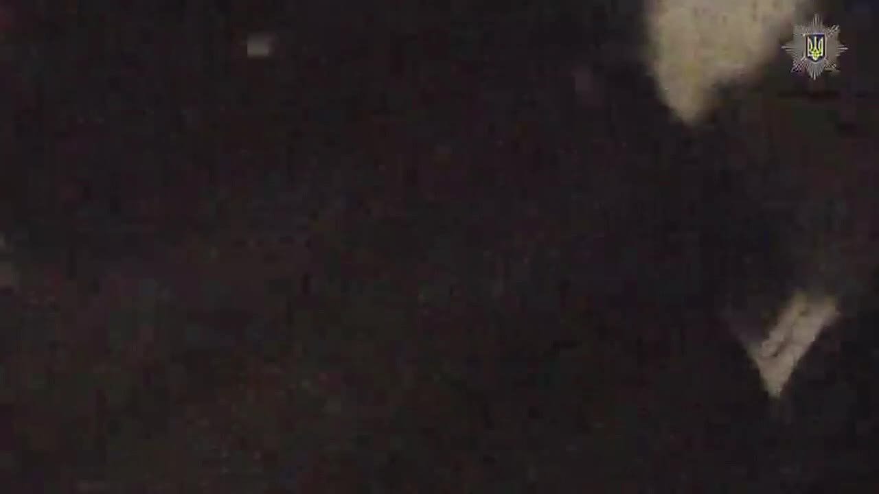 Украинские полицаи засняли момент повторного удара после прилета ракет ОТРК «Искандер-М» по цели в Оболонском районе Киева этой ночью