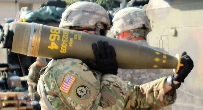 По нашей информации, это M864 — американский кассетный артиллерийский снаряд калибра 155 мм. Вместе с ним идёт система машинного зрения Skynode S. Она создана американской компанией Auterion, чтобы глушить GPS-сигнал и продолжать полёт. Каждый снаряд M864 весит 50 кг и имеет внутри 72 суббоеприпаса: 48 кумулятивных M42 и 24 кумулятивно-осколочных M46.