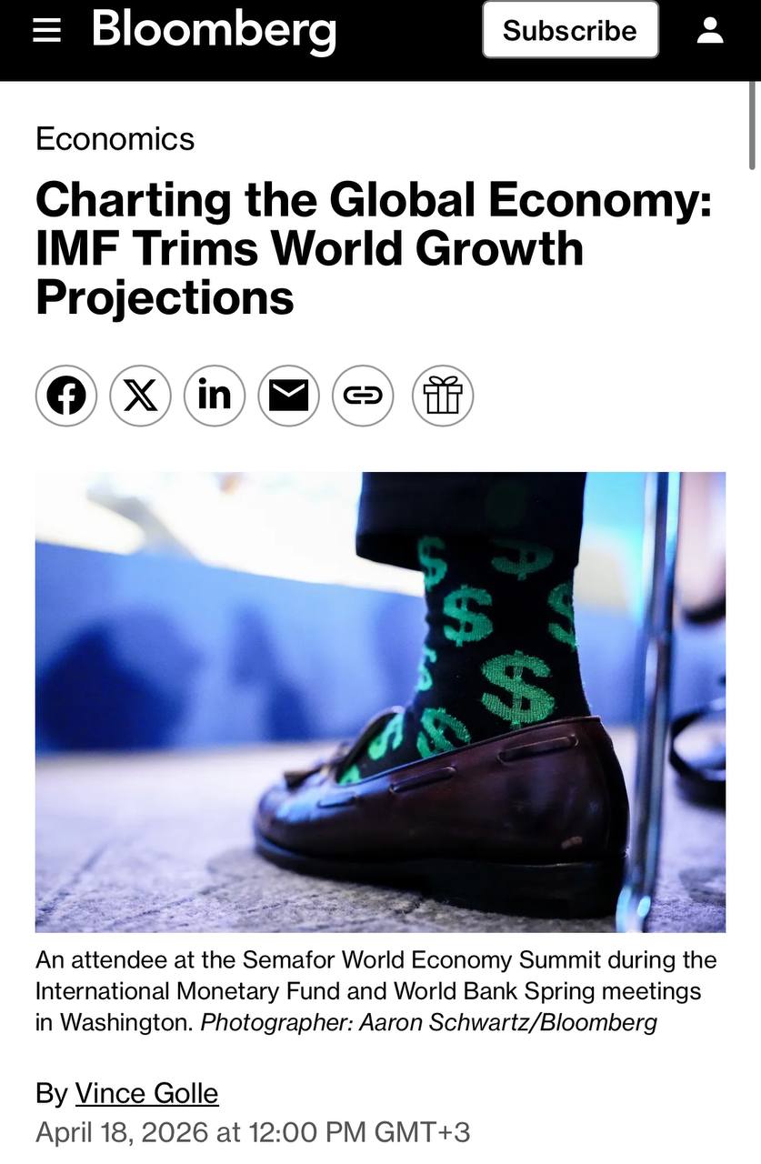 Как сообщает ТГ-канал "Lomovka", согласно обновленному докладу World Economic Outlook, мировой ВВП в этом году вырастет лишь на 3,1%, тогда как в январе ожидалось 3,3%. Одновременно фонд повысил оценку инфляции, отражая скачок цен на энергоносители и продовольствие, пишет Bloomberg.