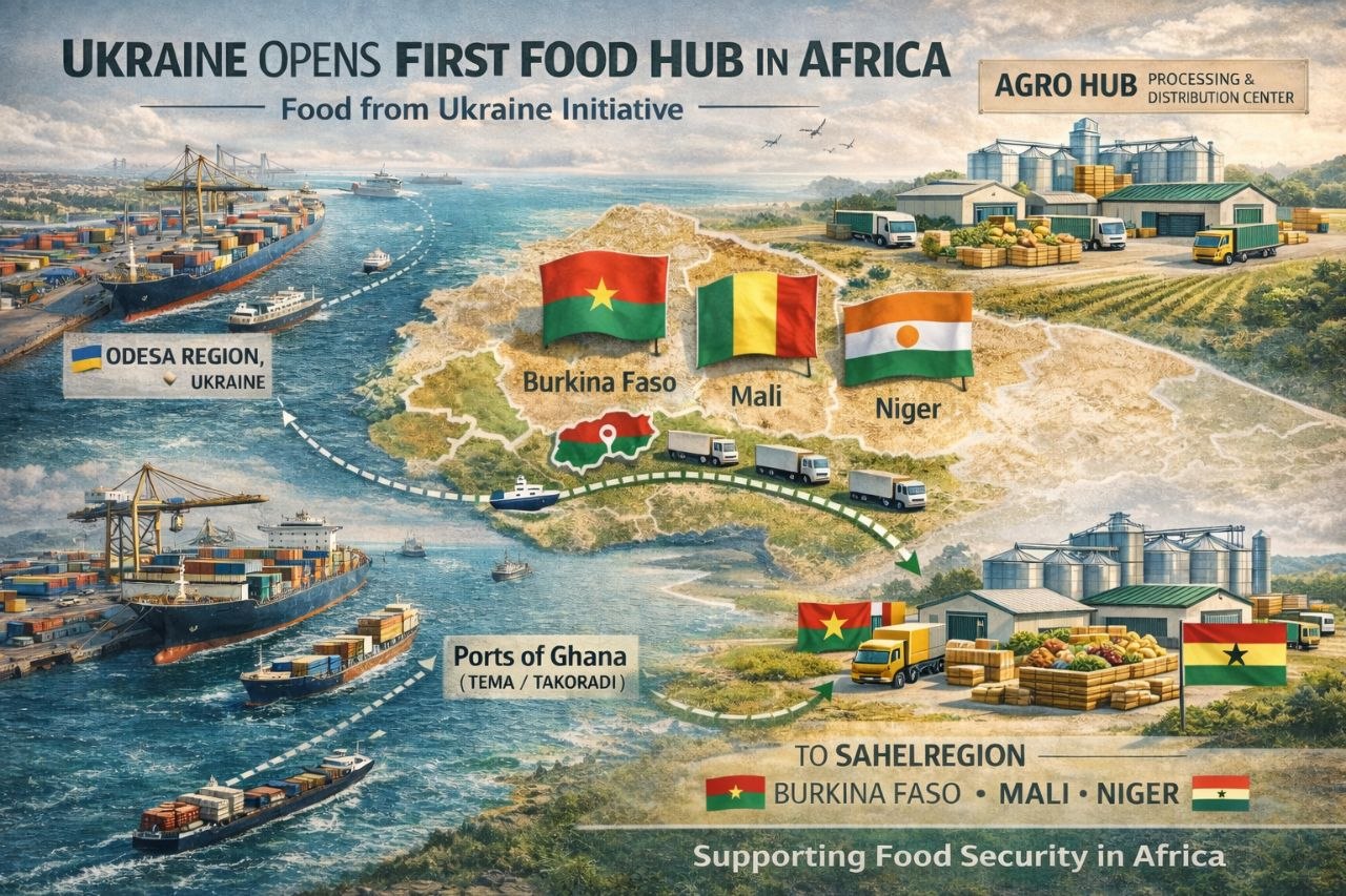 14 апреля 2026 года в рамках инициативы Food from Ukraine в Гане открыт первый агрохаб (Центр переработки и распределения продовольствия) в Африке.