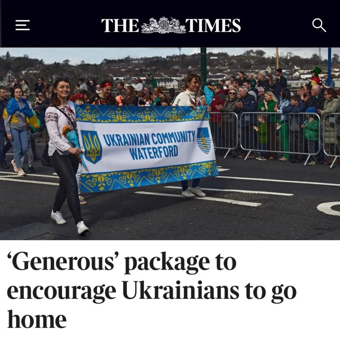 «Щедрый» пакет мер призван побудить украинцев вернуться домой»: Ирландия сворачивает программу размещения беженцев с Украины.