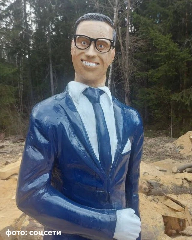 Житель города Пори раньше вырезал из дерева только животных и впервые попробовал проделать то же с человеком. Он «нарядил» фигурку в костюм и поставил, чтобы та боролась с птицами.