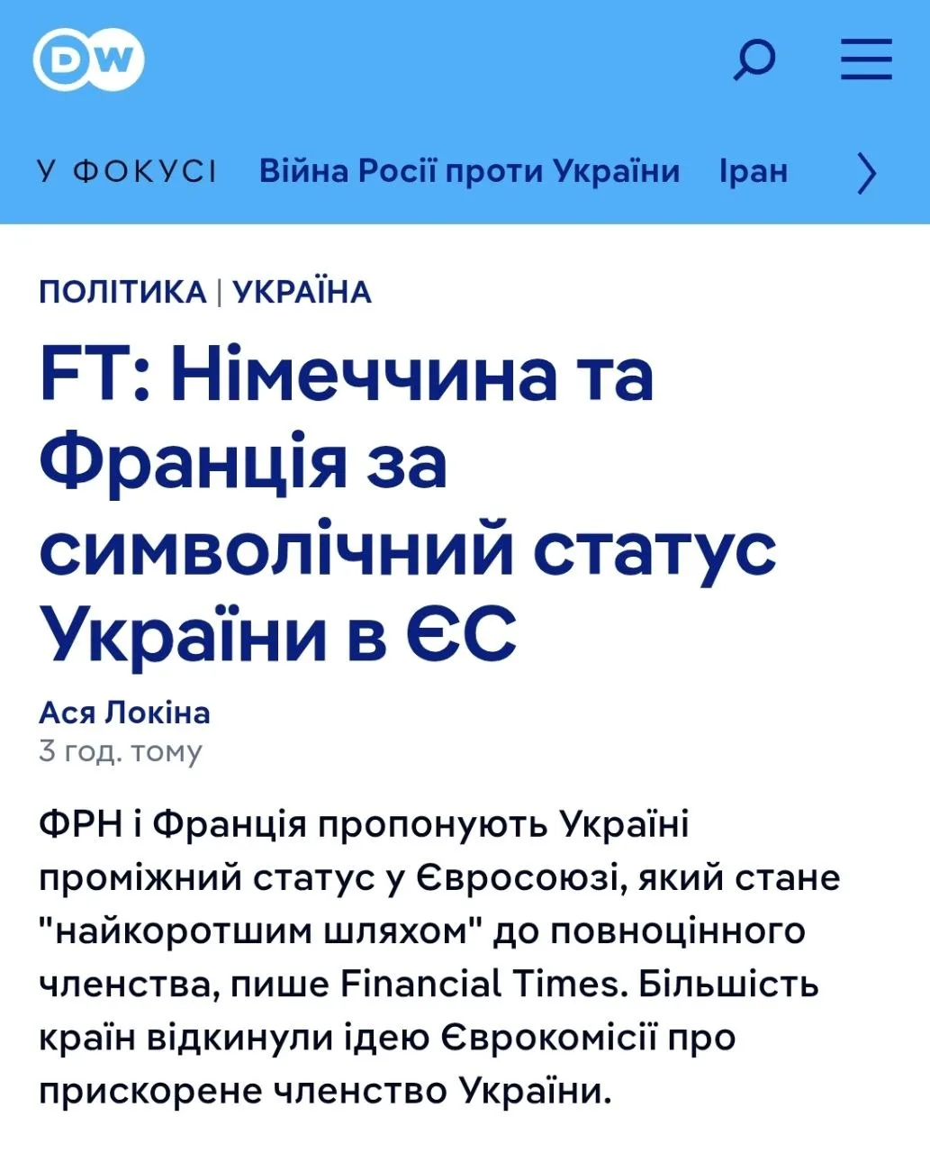 Пишут, что Германия и Франция разработали документы для принятия Украины в ЕС, но в особом статусе: