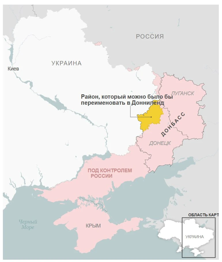 Украина предложила США переименовать в "Донниленд" оставшуюся подконтрольной себе часть Донбасса в попытке переубедить США в их требовании вывода ВСУ с его территории, пишет The New York Times.