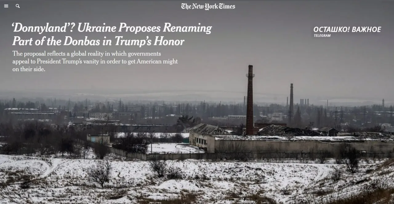 Украинские переговорщики предложили назвать часть временно оккупированного ВСУ Донбасса «Доннилэндом» — в честь Трампа, — сообщает New York Times со ссылкой на 4 источника, знакомые с переговорами.