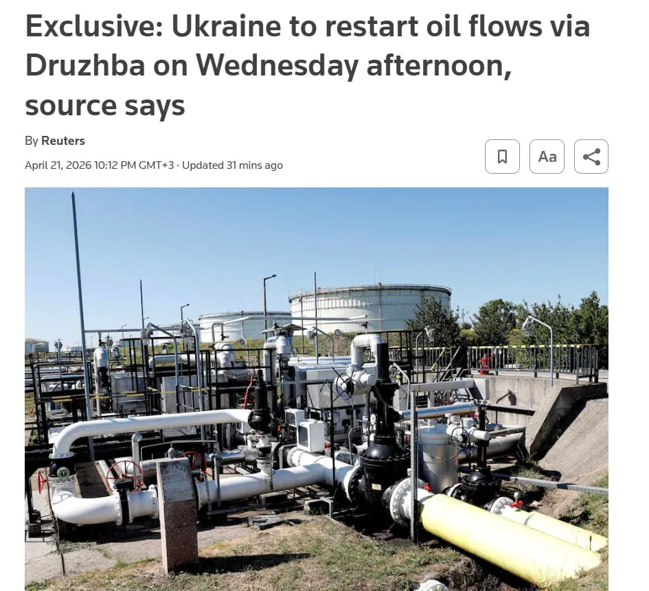 Ранее Зеленский заявил, что Украина завершила ремонт участка нефтепровода. А глава МИД Чехии сообщил: Венгрия и Словакия подтвердили, что при возобновлении поставок не будут препятствовать выделению кредита
