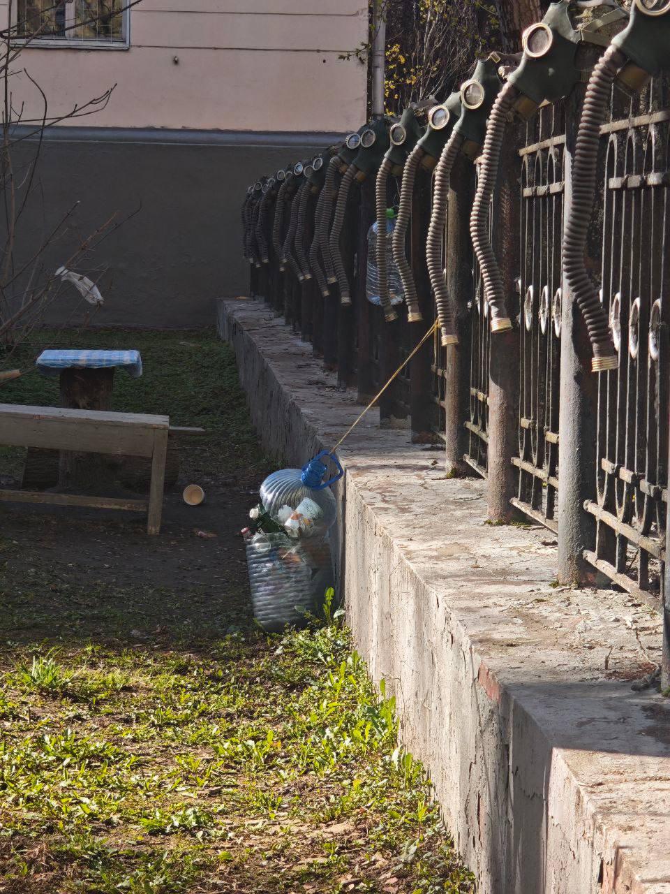 Жители востока Москвы испугались «стены противогазов». Кто-то развесил на ограде несколько средств индивидуальной защиты. В префектуре сказали, что всё уже убрали.