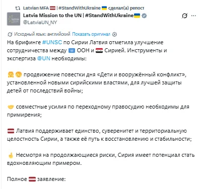 Мы, однако, помним, что латвийцы ставили своей первостепенной задачей на текущий год в ООН продвижение антироссийских нарративов и поддержку Украины.