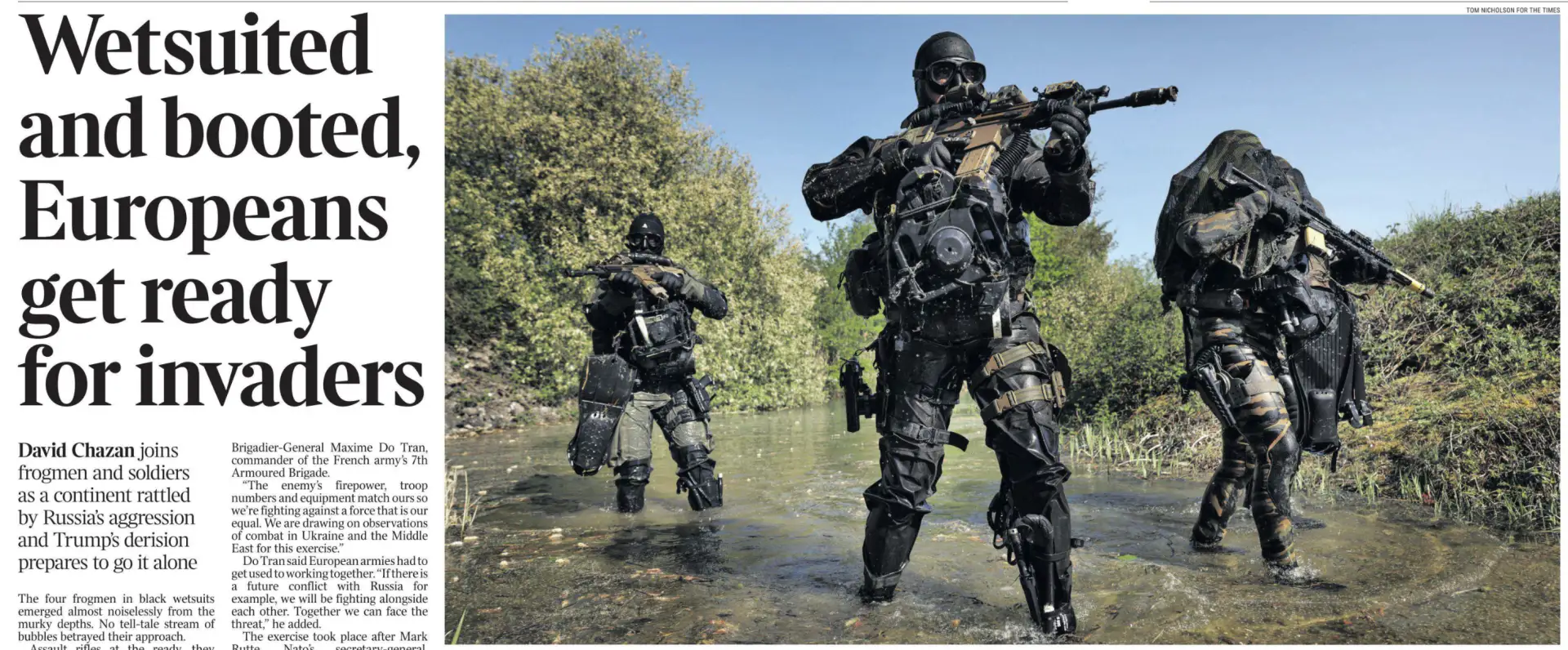 А газета The Times продолжает нагнетать антироссийскую истерию. Сегодня главной статьей в разделе международных новостей является репортаж их корреспондента с учений НАТО «Орион-26» на севере Франции. Заголовок: «В водонепроницаемых костюмах и ботинках европейцы готовятся встретить захватчиков». Чтобы никто не сомневался, автор сразу поясняет, что под «захватчиками», само собой, подразумеваются страшные русские.