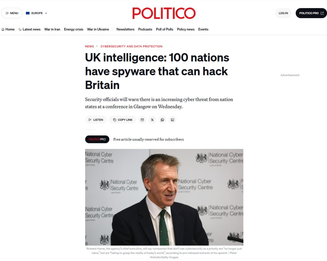 «По данным английской разведки, более половины государств мира приобрели технологии, с помощью которых можно взломать инфраструктуру, компании и частные сети Англии. За год количество значимых для страны кибератак на Англию удвоилось», - сообщает газета Politico.