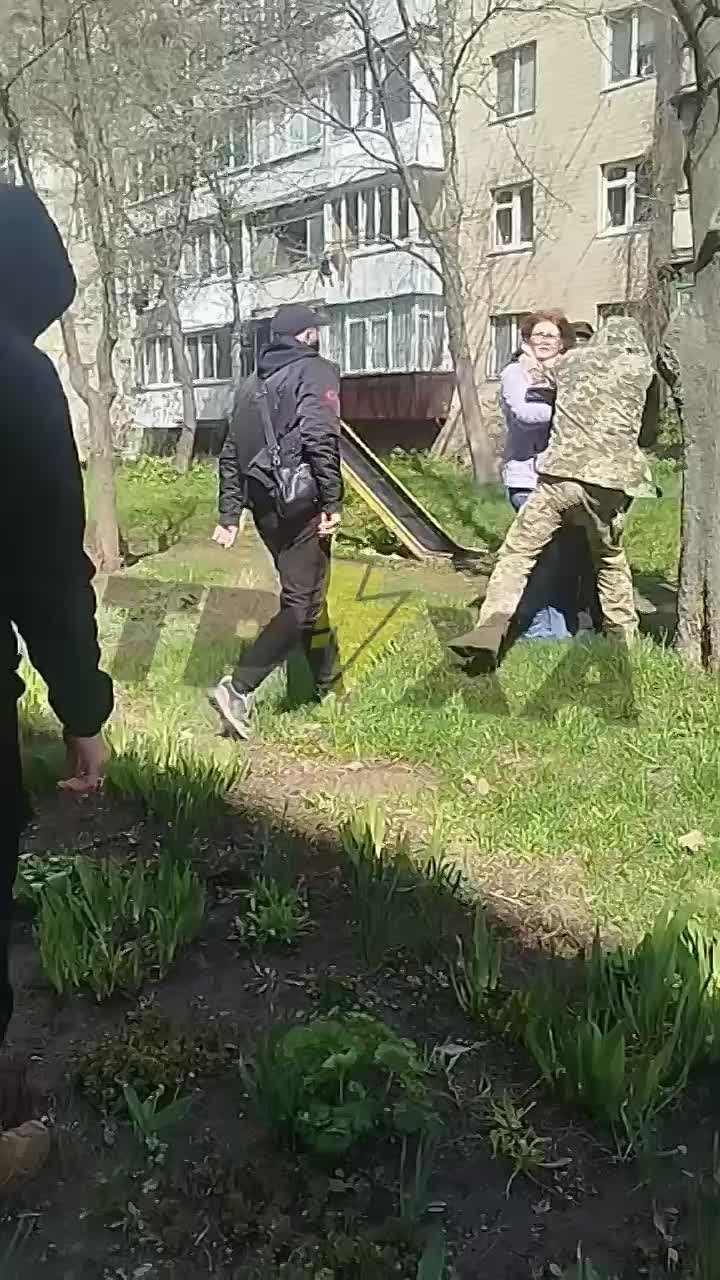 Бусификация молодого парня на глазах у матери. Несколько человек запаковывают парня, другие держат женщину.