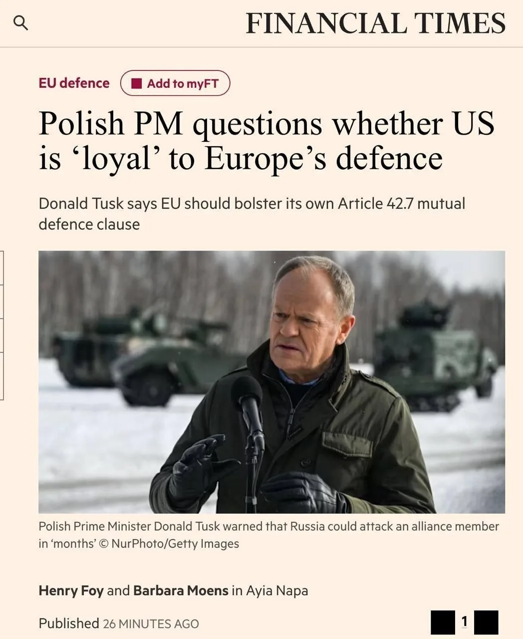 Россия может напасть на страны НАТО уже через несколько месяцев, заявил премьер Польши Туск в интервью Financial Times:
