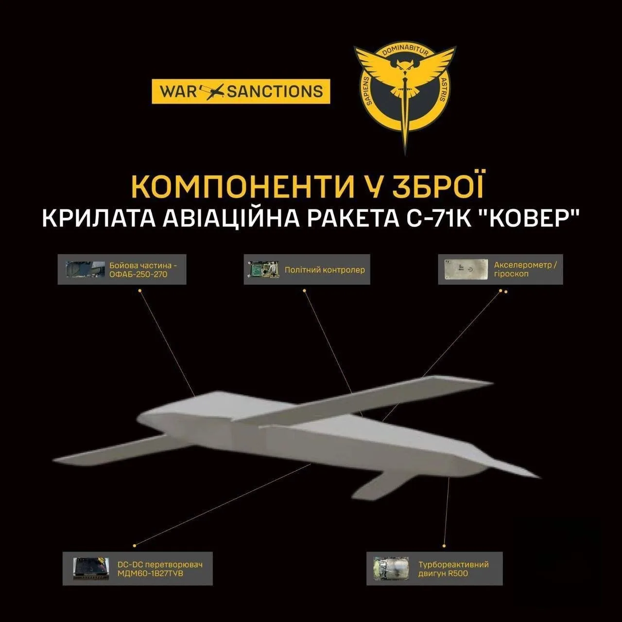 В качестве БЧ используется авиабомба ОФАБ-250-270, а в качестве двигателя малоразмерный турбореактивный (ТРД) REYNOLDS R500, что может говорить о целях удешевления и массовости выпуска производства.