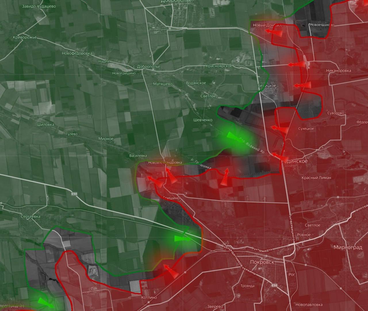«На Покровском направлении ВС РФ продвигаются на подступах к Новому Донбассу. Российские войска заняли несколько лесополос к юго-востоку от села и пытаются расширить вклинение в порядки Сил обороны Украины»