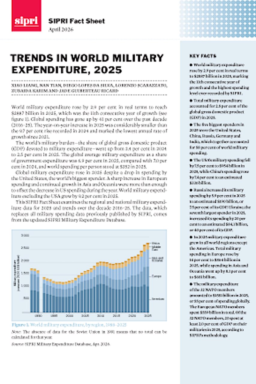 2025 г. стал 11-м подряд годом роста глобальных военных расходов (с 2015 г.). Доля военных расходов в мировом ВВП («военное бремя») достигла 2,5% — максимума с 2009 г.