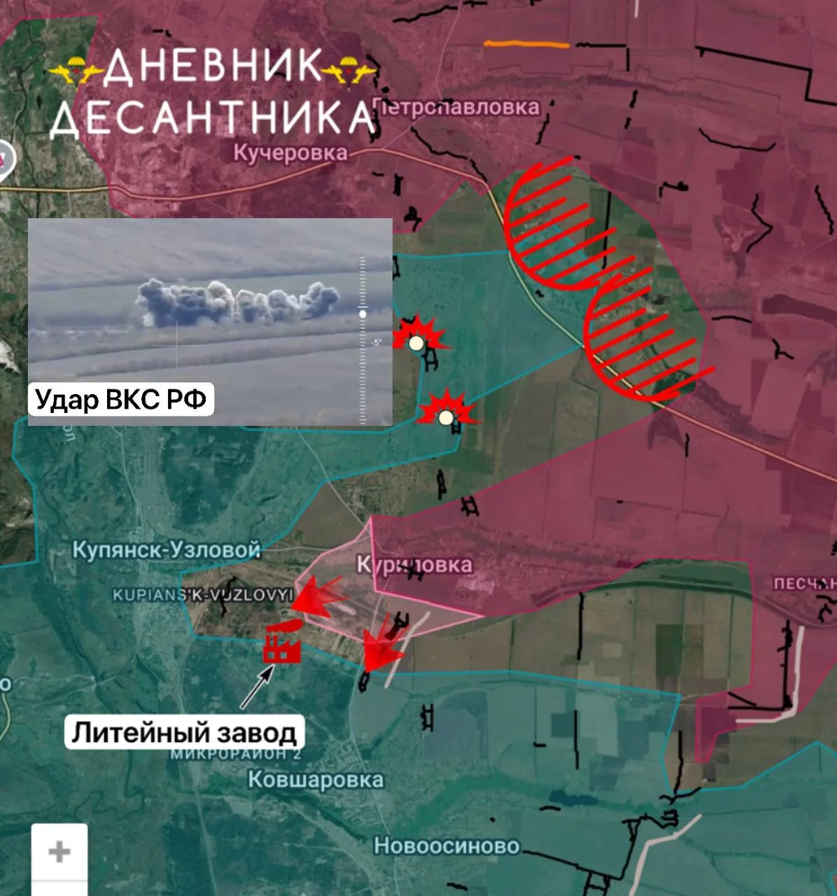 На восточном фланге продолжаются ожесточенные бои. ВСУ нарастили расчёты ударных дронов, за прошедшие сутки противник только по одному подразделению нанёс 78 ударов. Что, собственно, не останавливает наших мотострелков выгрызать у противника Литейный завод, за который идут ожесточённые бои;