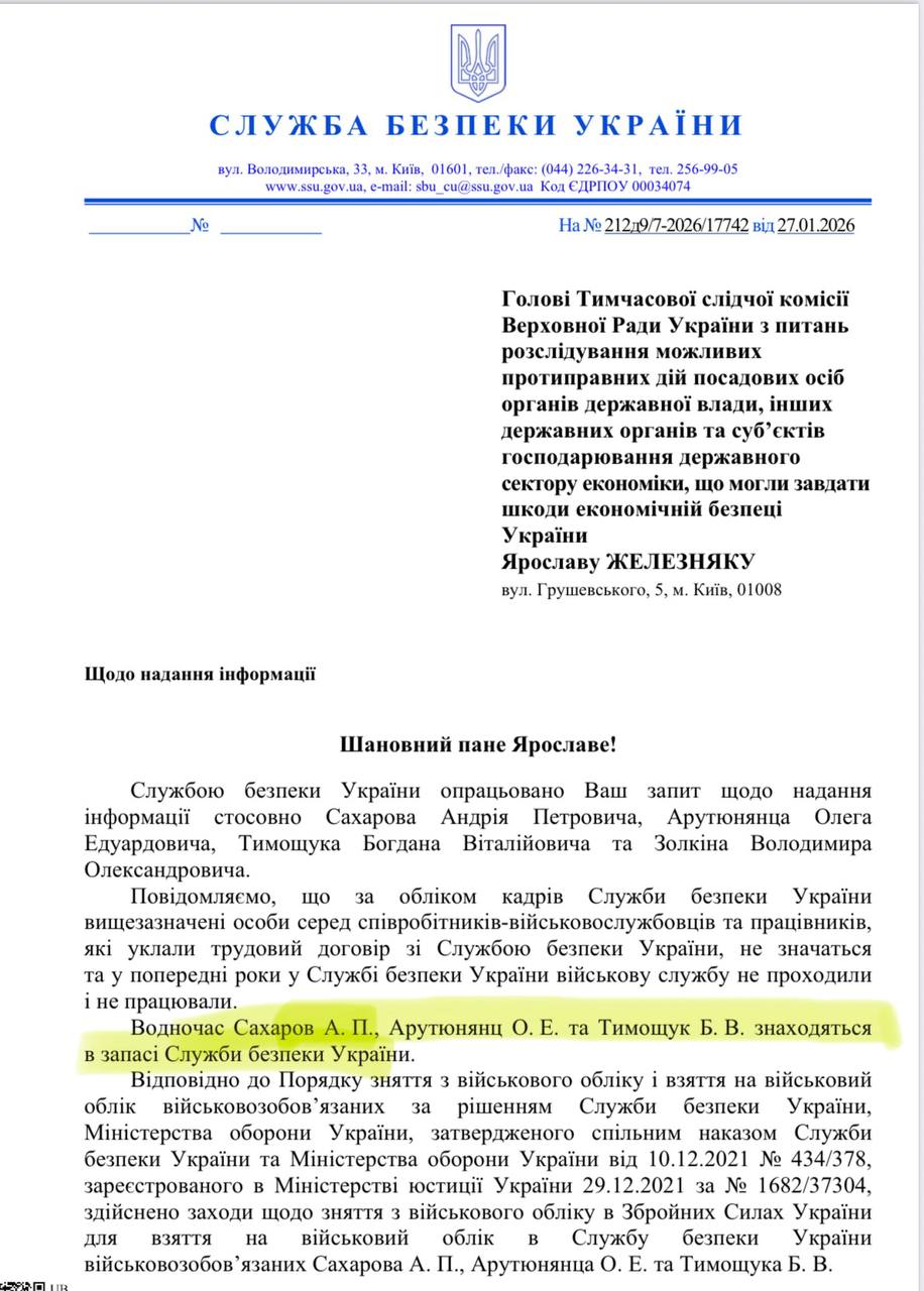 Сегодня в Верховной Раде прошла встреча нардепов с главой СБУ Хмарой. На ней парламентарий Железняк задал вопрос о каналах, явно находящихся в контакте с СБУ. И оказалось, что владельцы телеграм-каналов "Insider UA" (Андрей Сахаров), а также "Times of Ukraine" и "Україна Online" (Олег Арутюнянц и Богдан Тимощук) сняты с учёта в ВСУ и состоят на службе в запасе СБУ, номинально являясь её сотрудниками.
